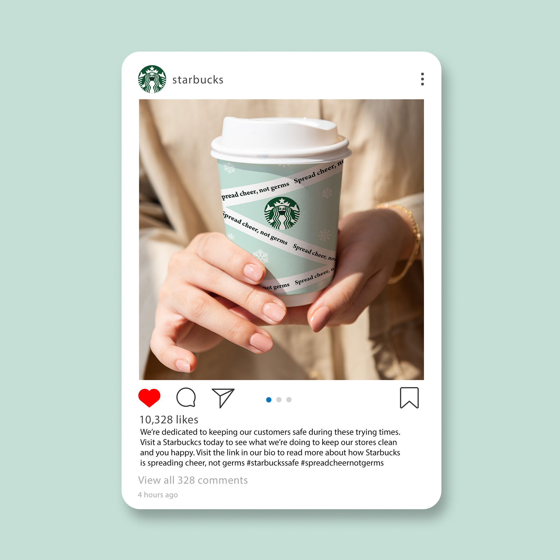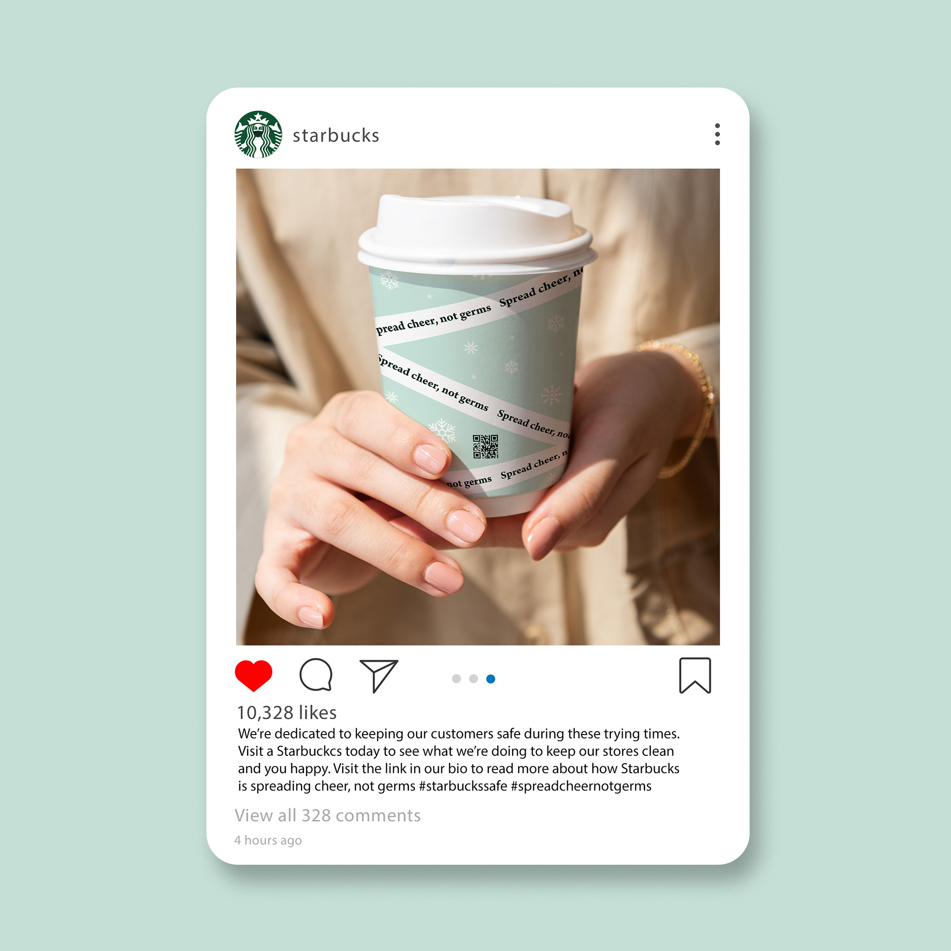 This Starbucks campaign initiative was created in light of the Covid-19 pandemic. With holiday cups, signage and social posts, Starbucks could still spread cheer in lieu of what was happening in the world.